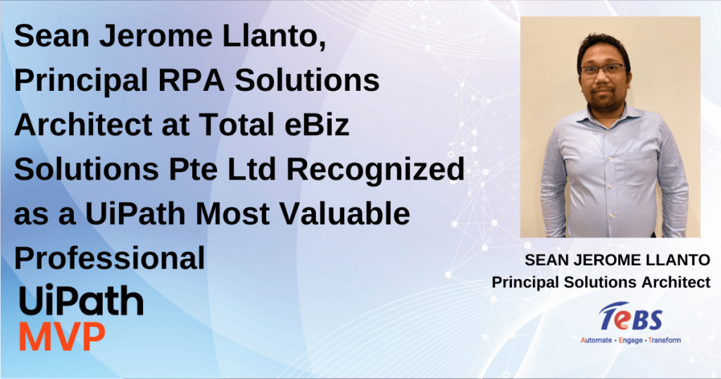 Enterprise Integration Architecting Seamless Synergy for A Unified Enterprise by Orchestrating Applications & Streamlining WorkflowsTalk to Our Expert Crafting Dynamic Enterprise Integration to Amplify Your Diverse Ecosystem TeBS empowers businesses with seamless enterprise integration, catalyzing real-time data accessibility, insights, and informed decision-making. harnessing leading integration platforms, we elevate productivity and drive a competitive edge in the ever-evolving business landscape. Analyst Recognition A testament to our innovation and unyielding progress while redefining technological horizons with unwavering resolve.TeBS Competency in Enterprise IntegrationWe are enterprise integration experts and have helped global clients to become agile and use modern integration tools. Data Integration Streamline data integration for robust reporting and analysis, leveraging innovative solutions to transform diverse data from apps, databases, data warehouses, and digital channels into actionable insights. Low Code Integration Accelerate integration with cutting-edge low-code/no-code platforms, empowering seamless collaboration and enhanced usability within your ecosystem. Platform as a Service Elevate enterprise integration with Azure Logic Apps, leveraging containerized runtime for robust solutions and comprehensive Azure expertise. APIIntegration Empower your product with custom or third-party APIs, leveraging our seamless integration services to streamline system connectivity. Embedded Integration Customize your solution with our dependable API development and integration, streamlining system connectivity and reducing development costs. Hybrid Environment Integration Embrace seamless connectivity with hybrid integration, bridging data and applications across cloud-to-cloud and cloud-to-on-premise environments effortlessly. TeBS Industry Solutions & Approach Unlocking Synergy Strategic Integration Planning Tailored Solutions for Industry-specific Challenges Dynamic Integration Platforms Leveraging Cutting-edge Low-code/No-code Tools Azure Logic Apps for Robust Enterprise Solutions API Mastery Custom & Third-party API Development End-to-End API Integration Services for Streamlined Connectivity Hybrid Harmony Seamless Cloud-to-Cloud Integration Cloud-to-On-Premise Data Integration for Future-Ready Applications Technologies We Work With The array of top-notch technologies helps that us create the best solution for your needs! Spotlight on Clients Customer Success Stories Explore our case studies: real-world solutions, transformative results.Nintex Asia Regional Sales Director visits TeBS OfficeSean Jerome Llanto, Principal RPA Solutions Architect at Total eBiz Solutions Pte Ltd Recognized as a UiPath Most Valuable ProfessionalTotal eBiz Solutions (TeBS) receives official UiPath Gold Partner statusView All Blogs 0- Digital Workplace10 Advantages of Collaboration Tools 0- Automation10 Benefits of Robotic Process Automation (RPA) 0- Digital Workplace5 Benefits of Project Monitoring Systems View All Connect With UsMake your enterprise more connected with TeBS.Get in Touch